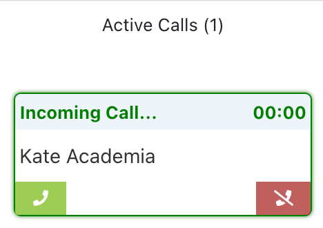1. Answer a direct incoming call by clicking the green Answer button on your Active Calls panel or from the queue by clicking Answer button